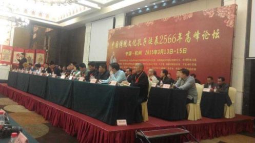 中国传统文化孔子诞辰2566年高峰论坛于2015年3月14日在浙江省杭州市杭州市萧山区金马国际酒店隆重召开。