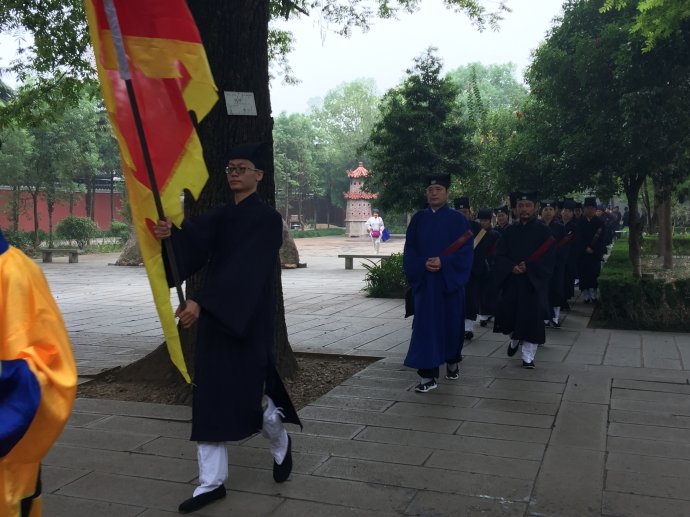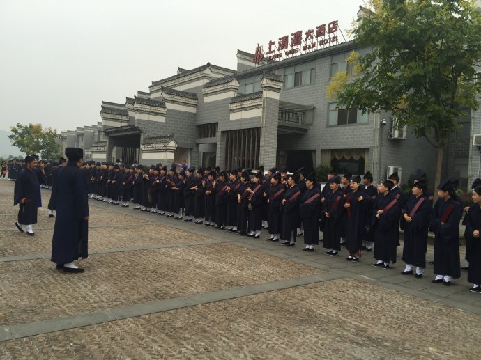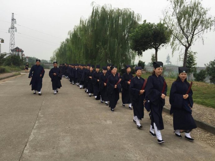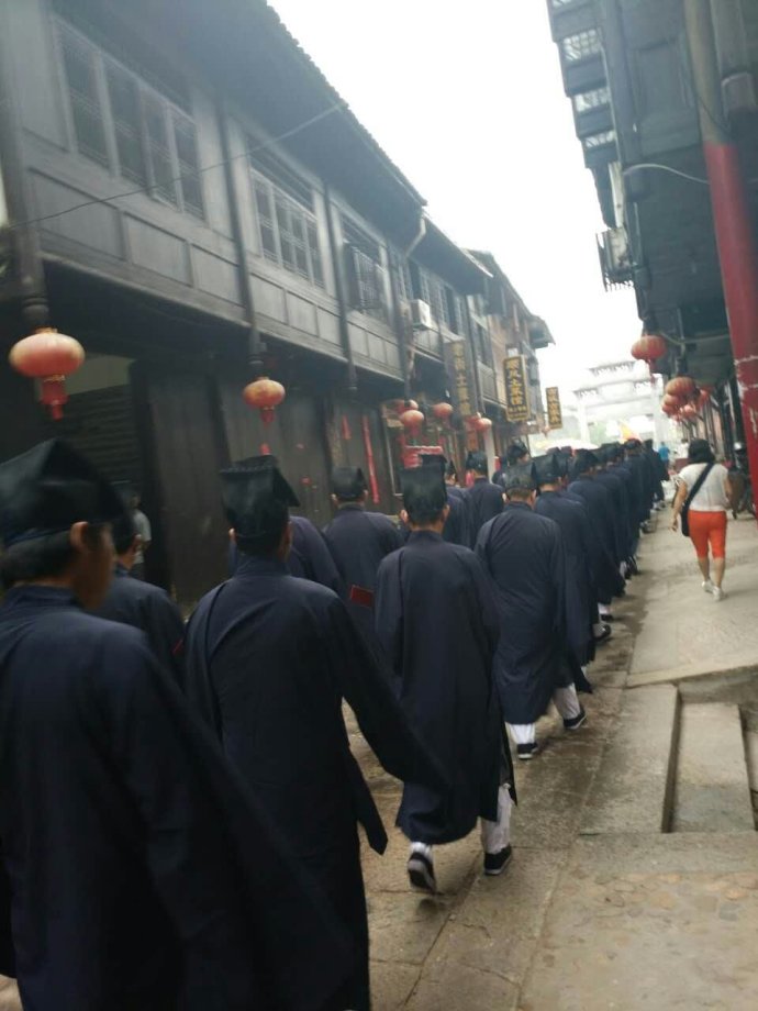 道教常识学习完毕。孙罗军、宋罗元带领全体队员徒步去往天师府授箓法坛。