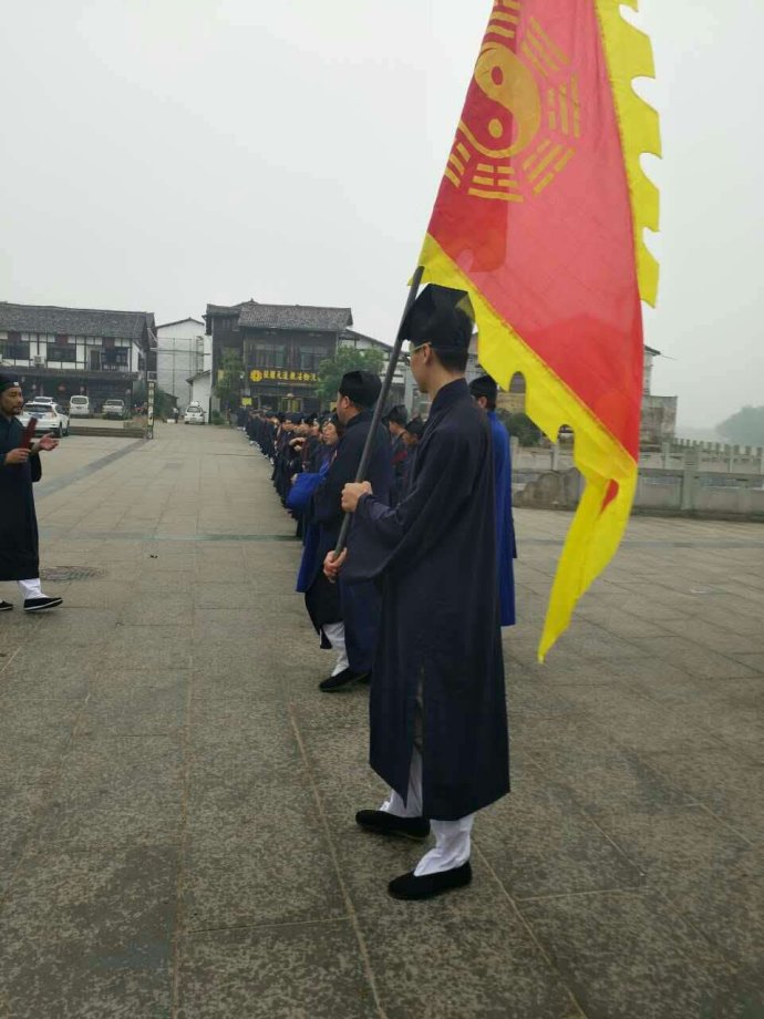 上午8点08分天师府门前与钟罗政的队伍汇合,从新排列队伍接受天师府领导检阅并且合影。