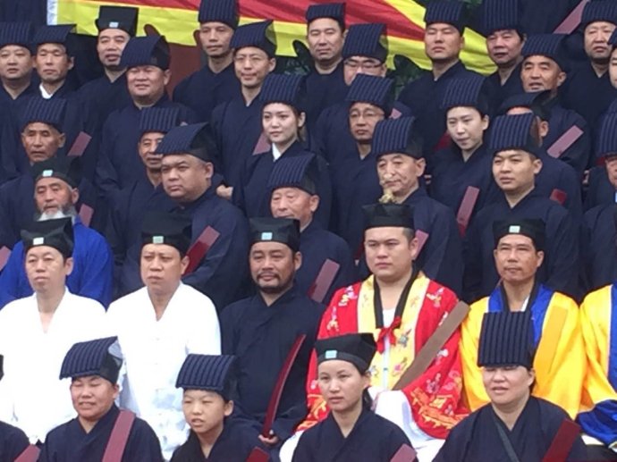 全体传度人员列队,宋罗元讲解道教基本常识。