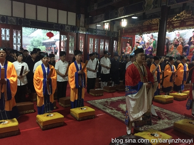 天师府法务组出府迎接传度弟子,并合影留念。然后高功法师引众进入天师府授箓法坛。众弟子在高功法师的率领下,向三清祖师、列位上圣高尊、历代天师行三皈九拜礼。伴随着绵长悠扬的《太极赞》,法务团开启传度科仪。高功法师,掐诀、存想、运神、步罡、变身、召将、入意……法坛庄严肃穆,斋醮如法如仪,表白朗声宣读众弟子名号,并将表文焚化以奏报天庭。颁发度牒,活动所颁发度牒由中国道教协会统一监制,江西省道教协会印制,传度证由中国道教协会印制。然后《祈福平安》、《圆满送圣》等科仪,法会圆满结束。